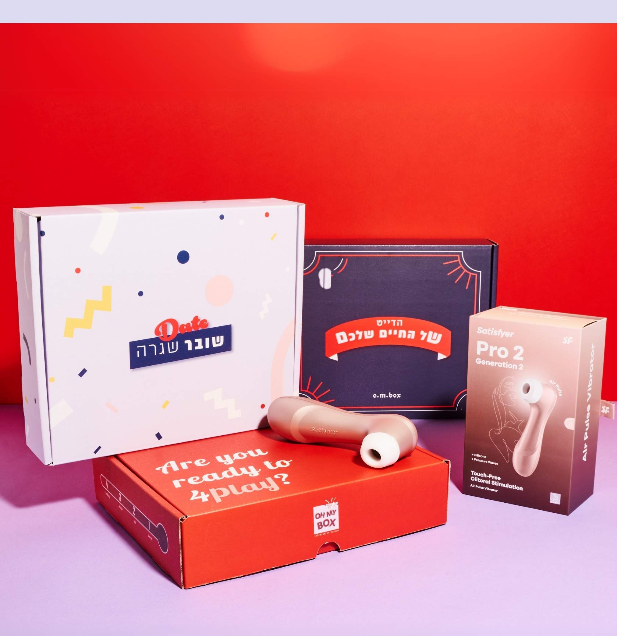 - קופסת דייט זוגי לבחירתכם: דייט שובר שגרה, דייט יומולדת, הדייט של החיים שלכם, פורפליי, קופסא לזוגות נשים (שימו לב 1– קופסת הפורפליי כבר מגיעה עם ויברטור רוקט פוקט קטן. שימו לב 2 – במידה ובחרתם "קופסת דייט יומולדת" – לא לשכוח להוסיף ברכה בהערות בשלב מילוי הפרטים האישיים).